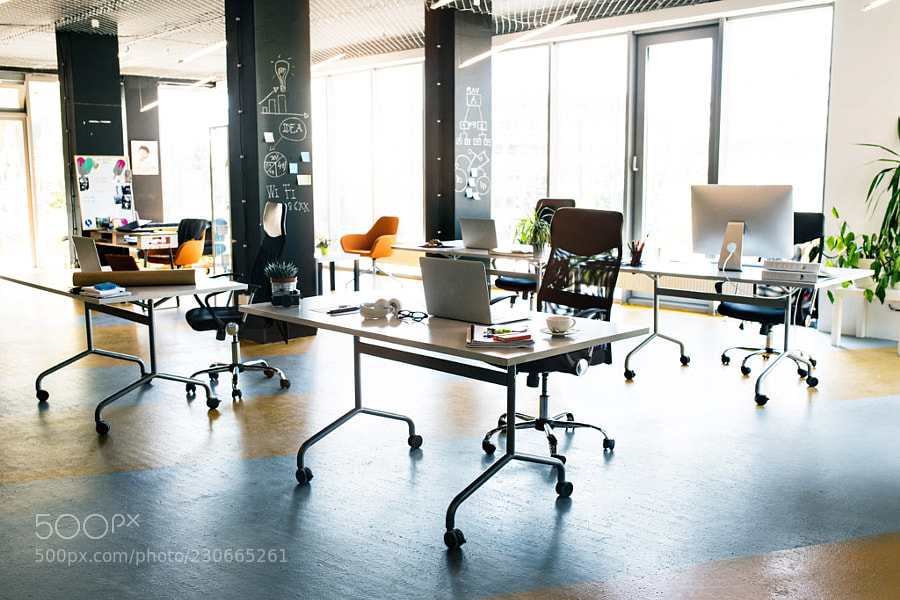 Big bright empty modern office after work. The interior of working office space. via http://500px.com/photo/230665261